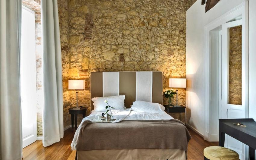 Certaines chambres présentent des plafonds mansardés et des murs en pierre artistiquement restaurés.