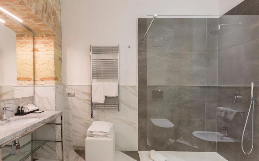 avec WiFi, TV LED 32" avec chaînes satellite et SKY, chaussons, téléphone, coffre-fort, climatisation, minibar, surmatelas à mémoire de forme, salle de bain avec douche à l'italienne, sèche-serviettes, sèche-cheveux.