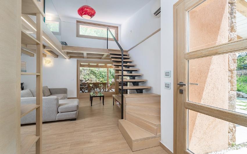 The property stands out for its unique style, harmoniously combining the charm of a wooden cottage with modern lines and a clean, functional design.