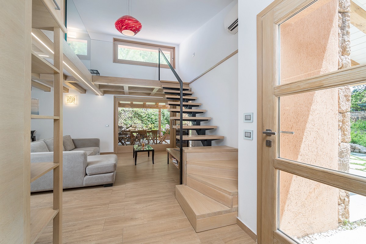 privileged location just a few minutes’ walk from the sea, which can be easily reached via a private path. This leads to a small bay characterized by the region’s typical rock formations, sculpted over time by wind and water.