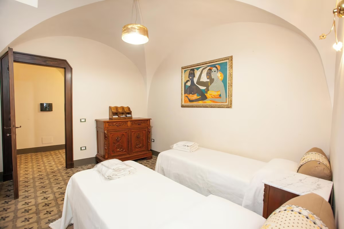 Con i suoi 80 m² luminosi, Dimore Terrazza combina eleganza storica e comfort moderno, offrendo ambienti ideali per famiglie o gruppi fino a 6 persone.