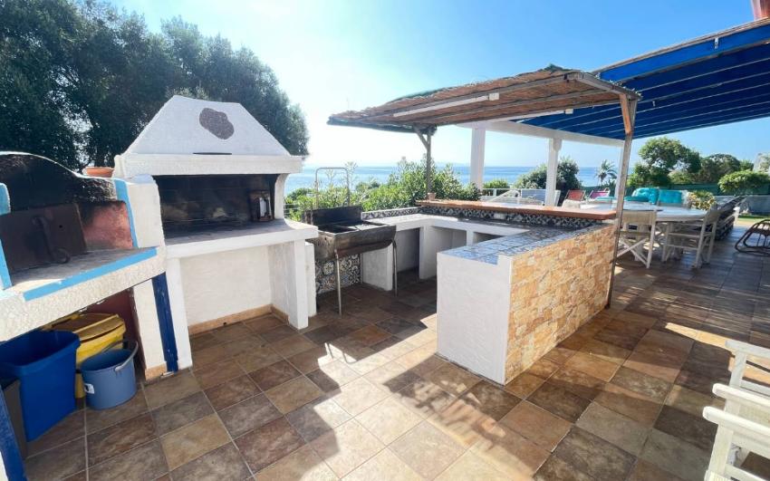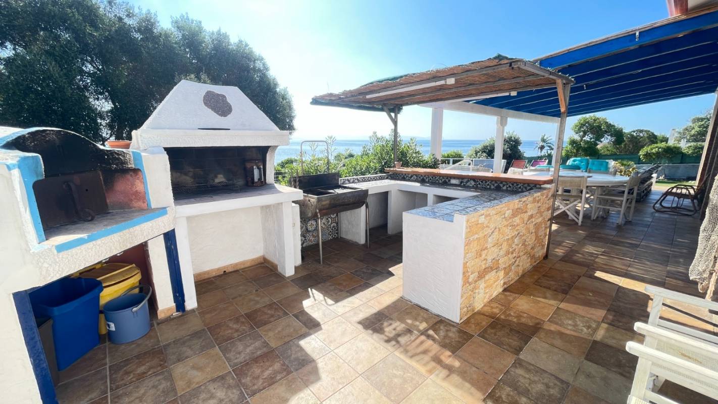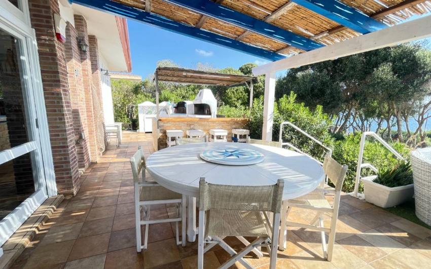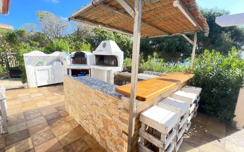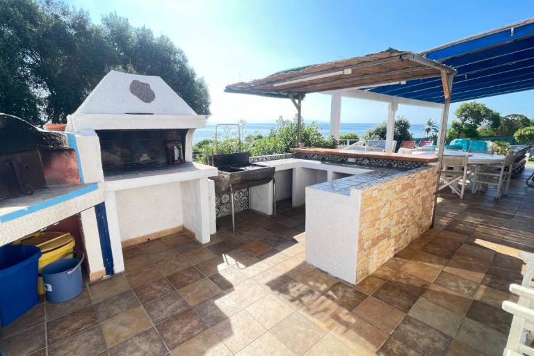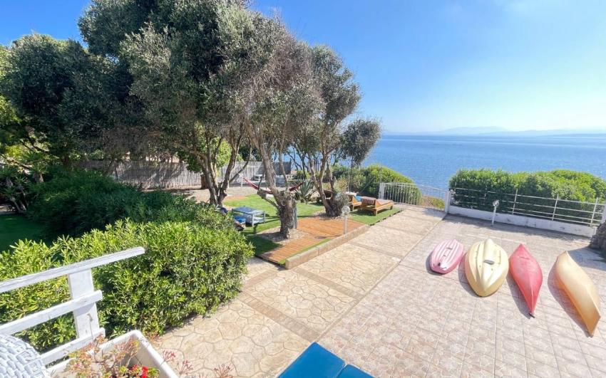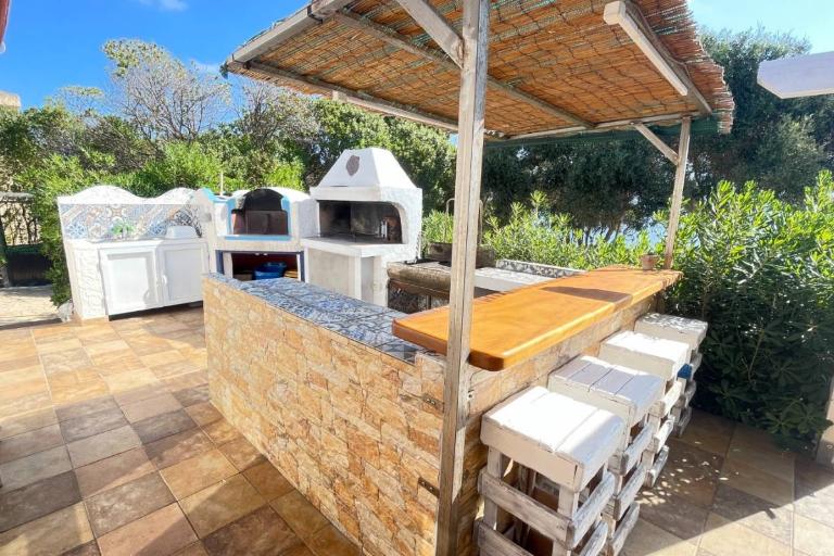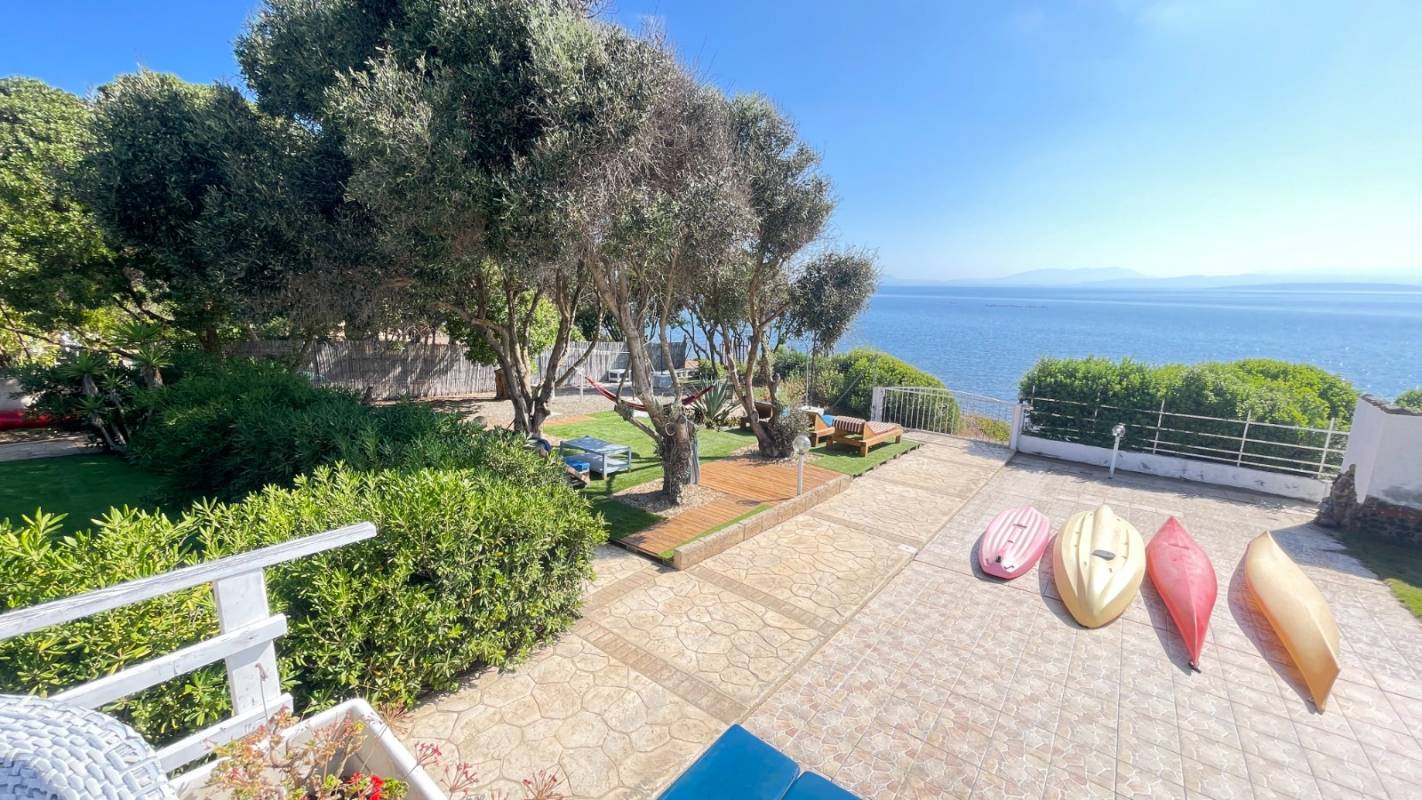 La villa dispone di un ampio giardino attrezzato con arredi da esterno e una grande veranda panoramica, perfetta per pranzi, cene e momenti di relax all’aria aperta. Dal giardino si accede direttamente alla scogliera e alla baia, un privilegio raro. La proprietà è ideale anche per chi ama gli sport acquatici: sono disponibili 2 kayak per esplorare la costa da una prospettiva unica. Non mancano doccia esterna e barbecue per vivere appieno la vita all’aperto.