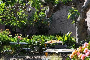L’hotel offre ogni giorno agli ospiti la possibilità di cenare nella splendida cornice del giardino o, nelle giornate più fresche, protetti dal loggiato.