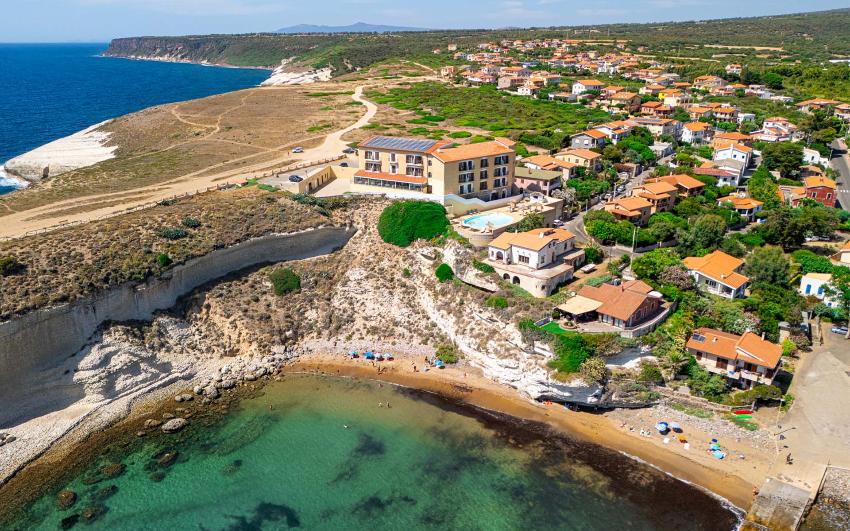 L'Hotel La Baja, posizionato su un promontorio, si affaccia su una insenatura naturale sulla costa occidentale della Sardegna a Santa Caterina di Pittinuri.