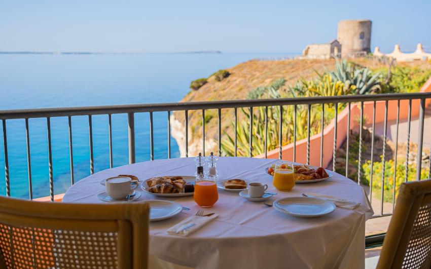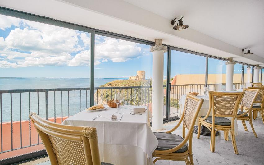 Nel periodo estivo vi è a disposizione una veranda coperta con vista mare – per pranzare e cenare godendosi l’ampio panorama sul mare. Lo chef propone una cucina dai sapori mediterranei con particolare attenzione alle specialità della Sardegna.
