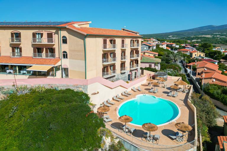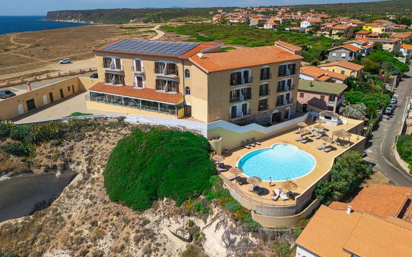 L'hotel, a due passi dalla Penisola del Sinis, gode di una ampia vista mare.