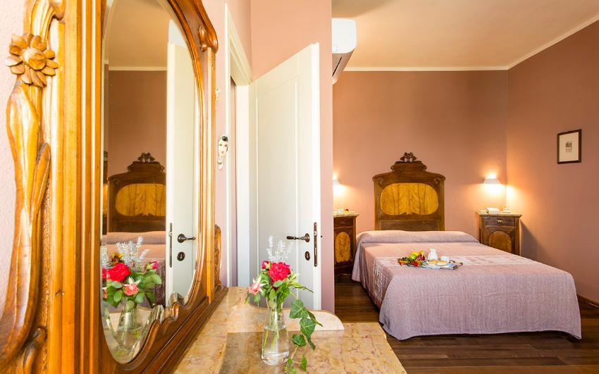 Ampie camere, delle quali tre nella Villa Liberty (una singola, una doppia e una tripla) e una nella “Casa Deriu” con possibilità di terzo letto; arredate alcune con mobili antichi e tutte con tessuti sardi e ferri battuti