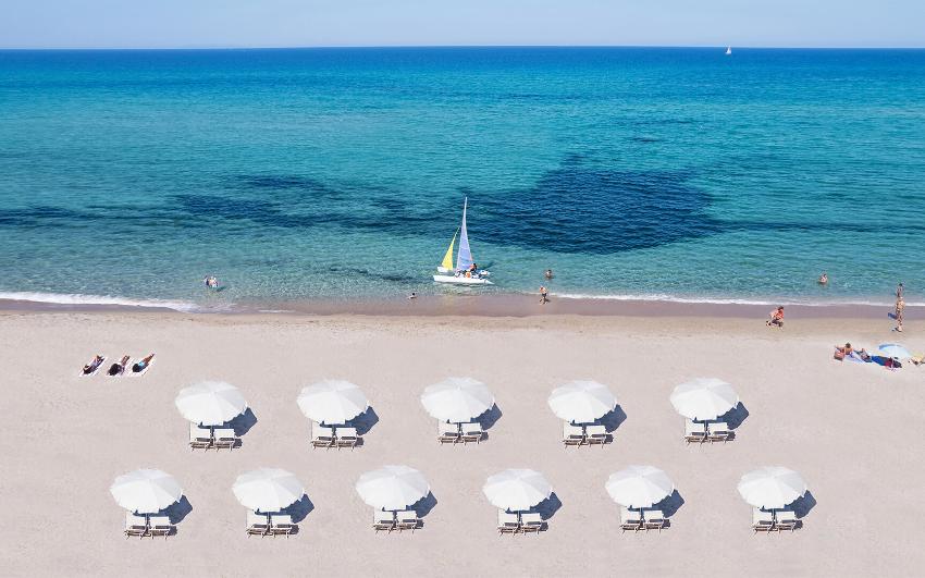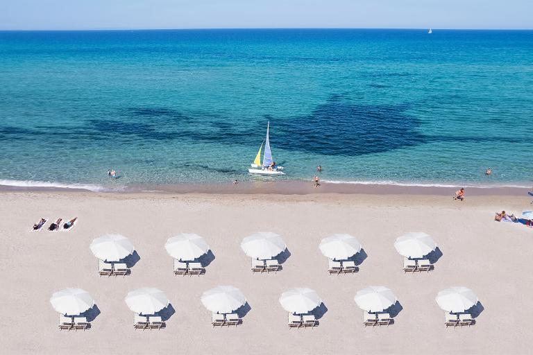 Il resort si affaccia sulla lunghissima spiaggia libera di Li Junchi (Bandiera Blu), una distesa di sabbia bianca lunga 8 km. L'area riservata agli ospiti del resort è attrezzata con lettini e ombrelloni, garantendo relax a due passi dalle dune di sabbia.