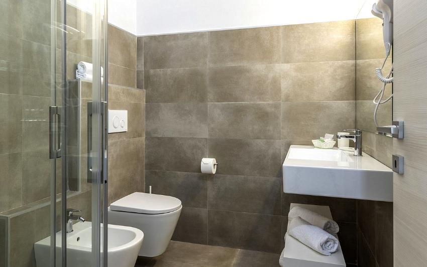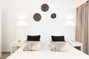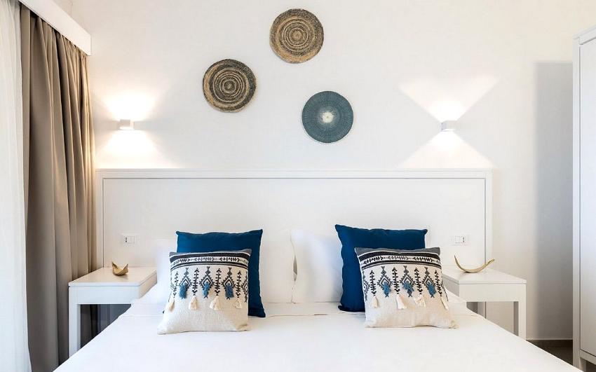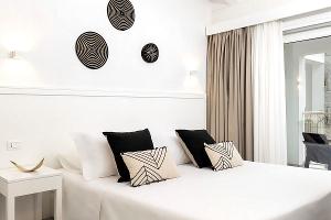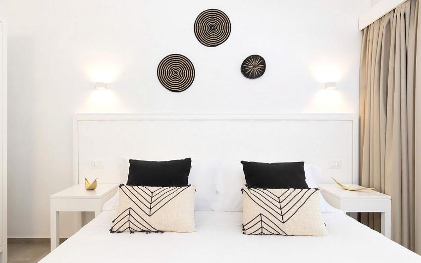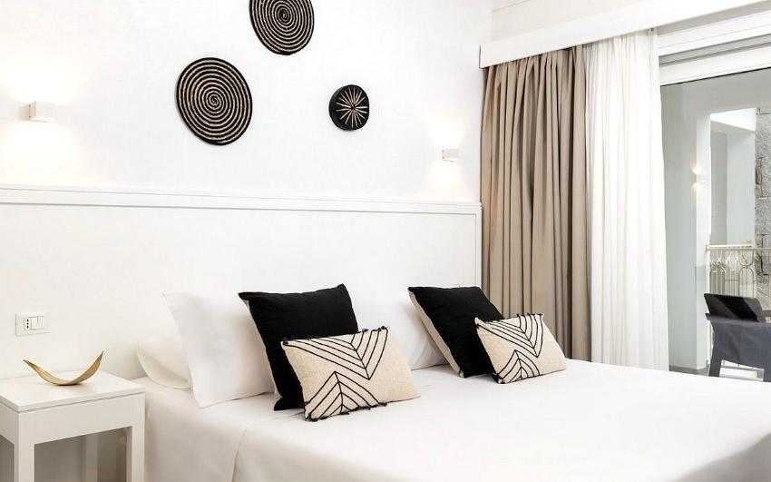 Le camere sono 90, tutte moderne ed essenziali, arredate con mobili in legno chiaro.
