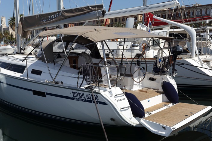 La barca a vela Bavaria Cruiser 41, anno 2018, con posti letto per un massimo di 6 persone in 3 cabine si trova nella marina di Cagliari nel sud o a Portisco nel nord-est della Sardegna.