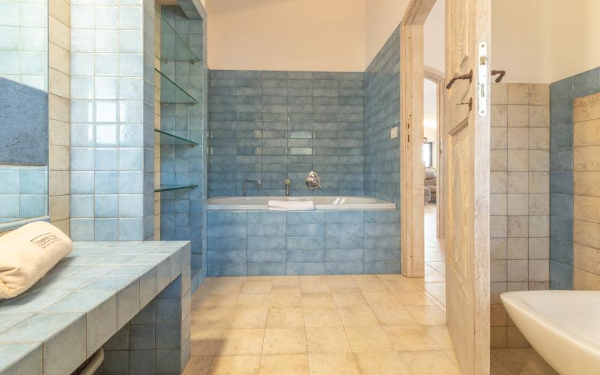 La villa si distingue per la sua eleganza e il design curato, pensata per offrire il massimo comfort agli ospiti. Gli ambienti interni sono spaziosi e luminosi, con camere da letto raffinate, bagni moderni e una cucina completamente attrezzata per soggiorni autonomi. Il soggiorno è ampio e accogliente, perfetto per momenti di relax in famiglia o tra amici, mentre gli spazi sono organizzati per garantire privacy e funzionalità senza rinunciare all’eleganza.