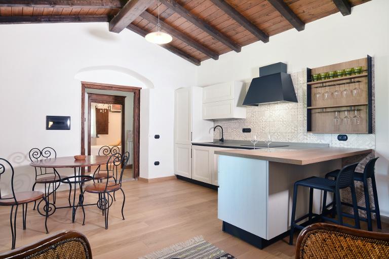 A pochi passi si trova la dependance indipendente, con 1 camera matrimoniale, 1 camera singola, bagno, angolo cottura e patio esterno privato.