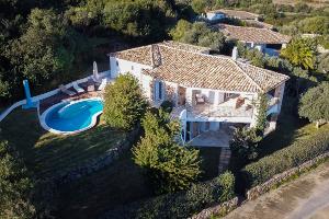 De luxe en elegant ingerichte villa ligt op het midden van een heuveltop, ongeveer 600 meter van het zandstrand in de buurt van de populaire badplaats Costa Rei in het zuidoostelijke deel van Sardinië